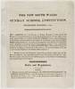 The New South Wales Sunday School Institution - rules and regulations, a being printed leaflet on the formal establishment of the Institution setting out rules on membership, appointment of the committee, appointment of a treasurer and secretary, annual meetings, special meetings, annual reports, and 'books to be used'. 3 pages, 1816. Safe 1/31d (Microfilm: CY 2608, frames 26-33).