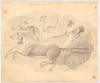 7. [Ink drawing of classical frieze depicting horses pulling a chariot with 2 Roman figures]
