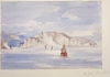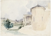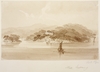 18. Pyndar / View from the sea shore looking W the house / The house was not finished when this view was taken / The verandah has been put up since [inscription on reverse of mount]