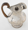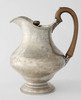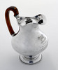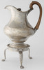 Objects - 1 silver jug with hinged lid and chipped wooden handle, plus silver stand - 21.5 x 17.3 cm. (jug) ; 8 x 12 cm. (stand)