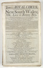 `New South Wales; Or, Love in Botany Bay' being playbill for an `Entire New Grand Spectacle, principally founded on recent Events, with entire new Scenery, Machinery, Dresses and Decorations' performed at Jones's Royal Circus, St George's Fields. This spectacle was invented and produced under the direction of writer and actor, John Cartwright Cross.