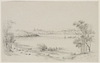 4. View from Craig Eng. Unsigned. Titled and dated, ‘April 1841’. The house visible in the middle distance is possibly Craigend Cottage (also known as Myrtle Cottage) which stood in the grounds of Craigend, or possibly Waratah, which was on the property adjoining Craigend.