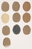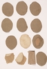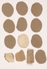 Packing card behind miniatures cut from paper with attached printed label partially inscribed 'From / Mess..., Vonwiller & [?] / [M]arket Street, Sydney, / Cor [i.e. Corner] of York Street.'. Partial inscription handwritten in ink on label '...Lawrence...'